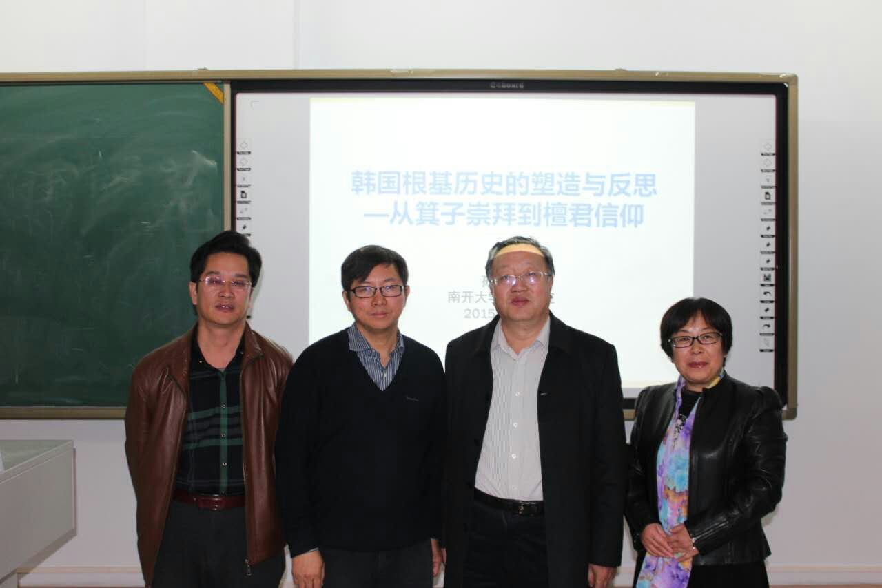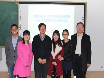 2015年10月30日下午,“亚洲共同体及东亚国际史系列讲座”邀请了南开大学博士生导师孙卫国教授,为公司师生做了“韩国根基历史的所在与反思——从箕子崇拜到檀君信仰”的专题讲座。孙老师从“根基历史”释义开始,介绍了中国古代箕子其人,箕子东去朝鲜,朝鲜的箕子崇拜与朝鲜历史的建构,以及箕子认同消亡与檀君信仰勃兴等几个问题,孙老师的讲座客观地再现了韩国历史上的民族信仰以及变迁,揭示了“现实需求、当下意识与民族认同”是其信仰选择的依据。讲座开拓了师生学术视野,启发了员工思考,最后进行了有效的师生互动。