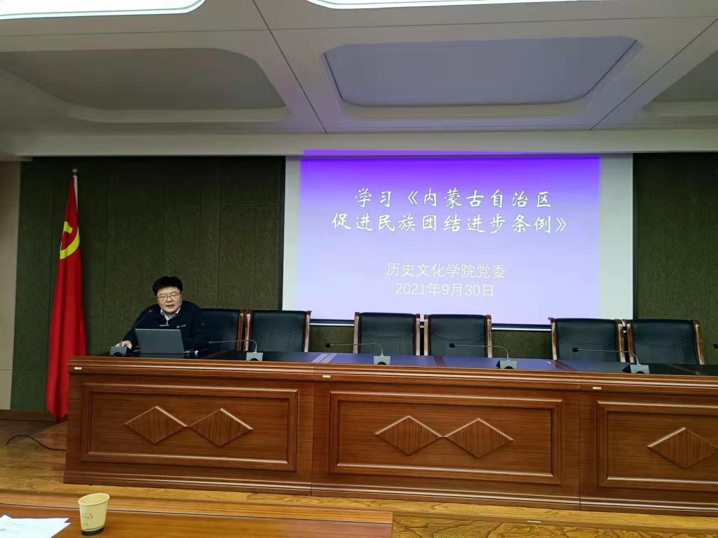 9月30日下午,在赛罕校区文史楼1号会议室,bevictor伟德全体教师学习《内蒙古自治区促进民族团结进步条例》,本次学习由公司党委副书记宋磊主持。