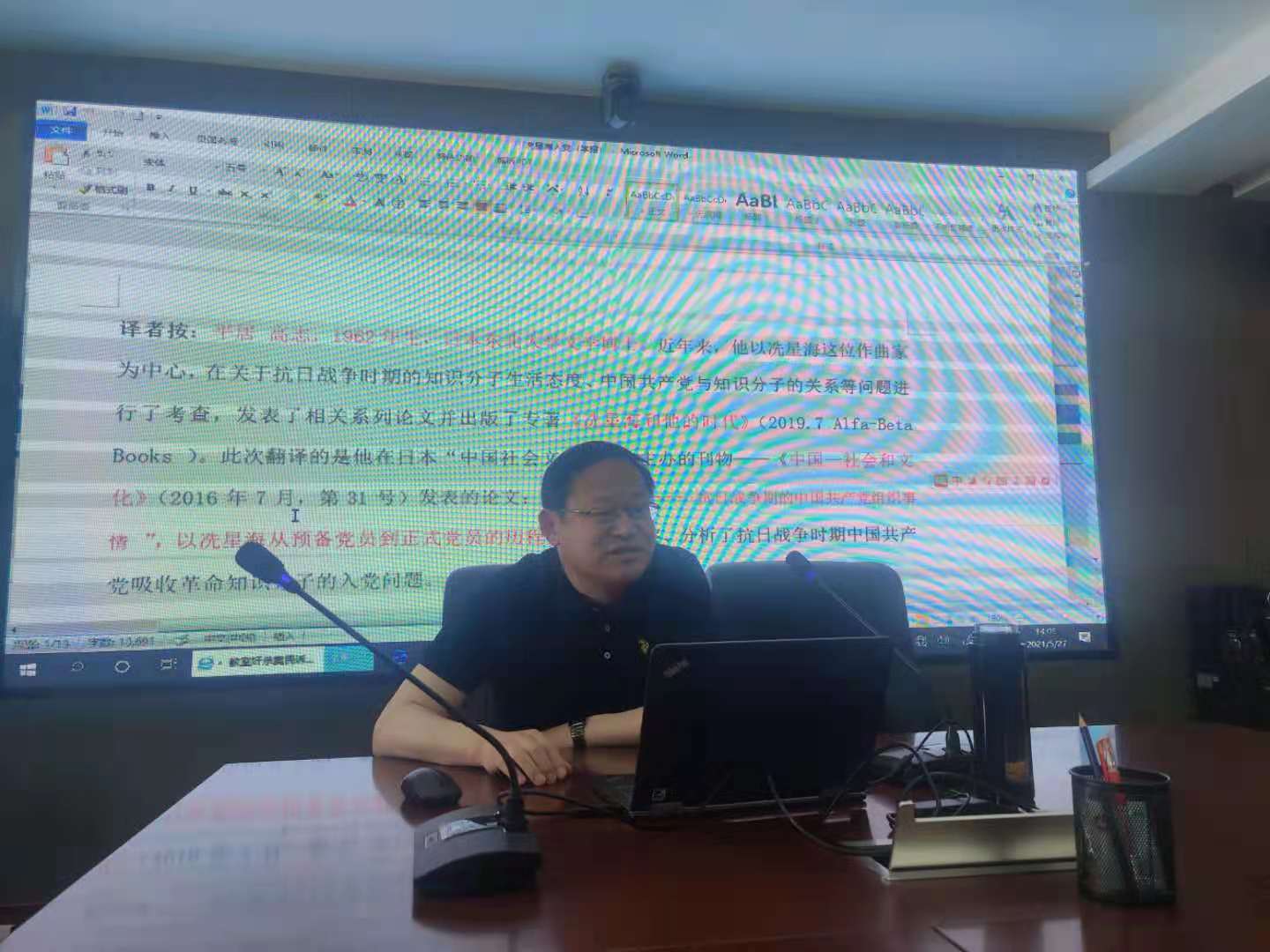 2021年5月27日,公司党委开展党史学习教育之党史研究分享,邀请公司丁晓杰教授为大家做《冼星海入党——抗日战争时期中国共产党组织事情》的报告,与大家分享了学术界对中共六大后我党的统一战线工作和吸收知识分子入党相关问题的研究。