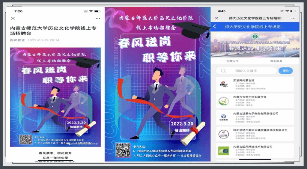 院积极参与名师直播带岗活动,2021年底参加自治区党委统战部、自治区工商联、自治区人社厅、自治区教育厅联合主办的“千企进校园、引才送岗位”老员工就业创业招聘会启动仪式,并积极与内蒙古老员工创业联合会签订合作意向,公司主动与内蒙古老员工创业联合会以及企业公司联系对接。2022年3月与内蒙古老员工创业联合会合作成功举办线上专场招聘会。