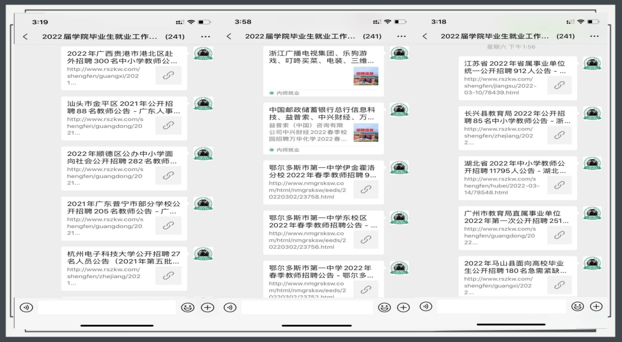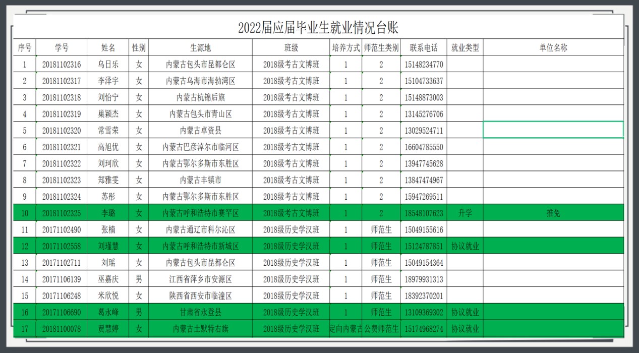 公司2022届毕业生人数234人,截至3月25日,已落实就业去向35人;通过硕士研究生国家线31人,保研7人;备考公务员、选调生考试41人;备考教师40人,投递简历等待面试40人;待就业80人。