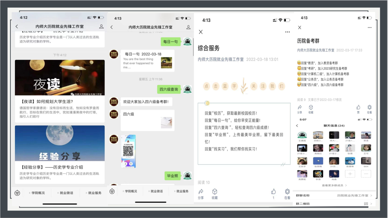 公司根据疫情防控期间就业形势的变化和就业工作方式的调整,加强线上就业创业指导和服务工作,成立就业先锋工作室,打造就业创业专属服务阵地。利用公司就业先锋微信公众号,推出“就业微话”“经验分享”“求职技巧”“就业分享会”等全新微信专栏,为毕业生推送更有针对性的就业技巧、职业选择、择业心态等方面相关资讯。同时,职业生涯与就业指导咨询室由专职辅导员定期开展线下职业生涯规划咨询与就业指导工作以及提供线上知识讲授及在线答疑服务,面向计划参加第八届“互联网+”创新创业大赛的创业团队提供线上一对一咨询辅导服务。