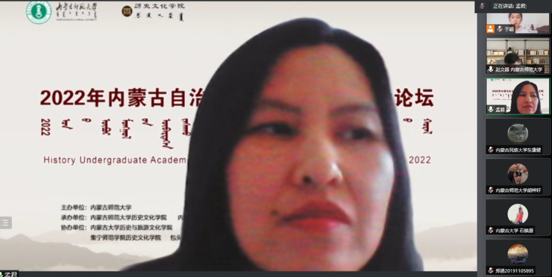 本网讯 4月24日,由bevictor伟德、内蒙古史学会、内蒙古高校中国北疆史研究基地和中国与北方邻近国家关系史研究中心承办,内蒙古大学历史与旅游文化公司、内蒙古民族大学法学与历史公司、呼伦贝尔公司bevictor伟德、集宁师范公司bevictor伟德、包头师范公司bevictor伟德、赤峰公司bevictor伟德协办的第一届“内蒙古自治区历史学本科生学术论坛”以线上线下相结合的方式顺利召开,邀请10余位专家从全区7所高校提交的100多篇论文中择优选取46篇进行研讨。来自内蒙古大学、内蒙古民族大学、呼伦贝尔公司、集宁师范公司、包头师范公司、赤峰公司等7所高校历史学专业的120余名专家学者、研究生、本科生参加论坛。