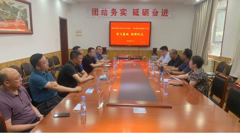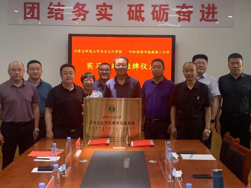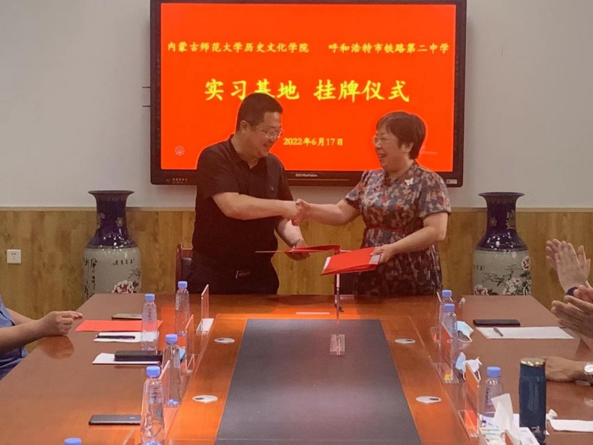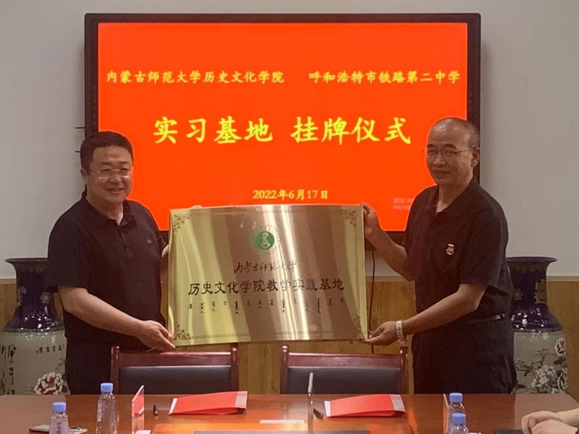 经理李艳洁与铁二中董事长刘丰进行了签约仪式、张升书记向呼和浩特市铁路第二中学颁发“教学实践基地”牌匾。