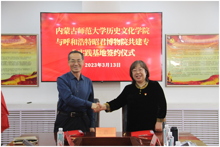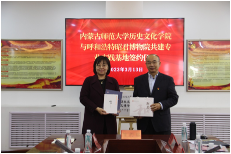 座谈会后,双方签署了专业实践基地协议并举行了揭牌和赠书仪式。昭君博物院副经理包苏那嘎主持座谈会,参加活动的还有昭君博物院的相关同志。