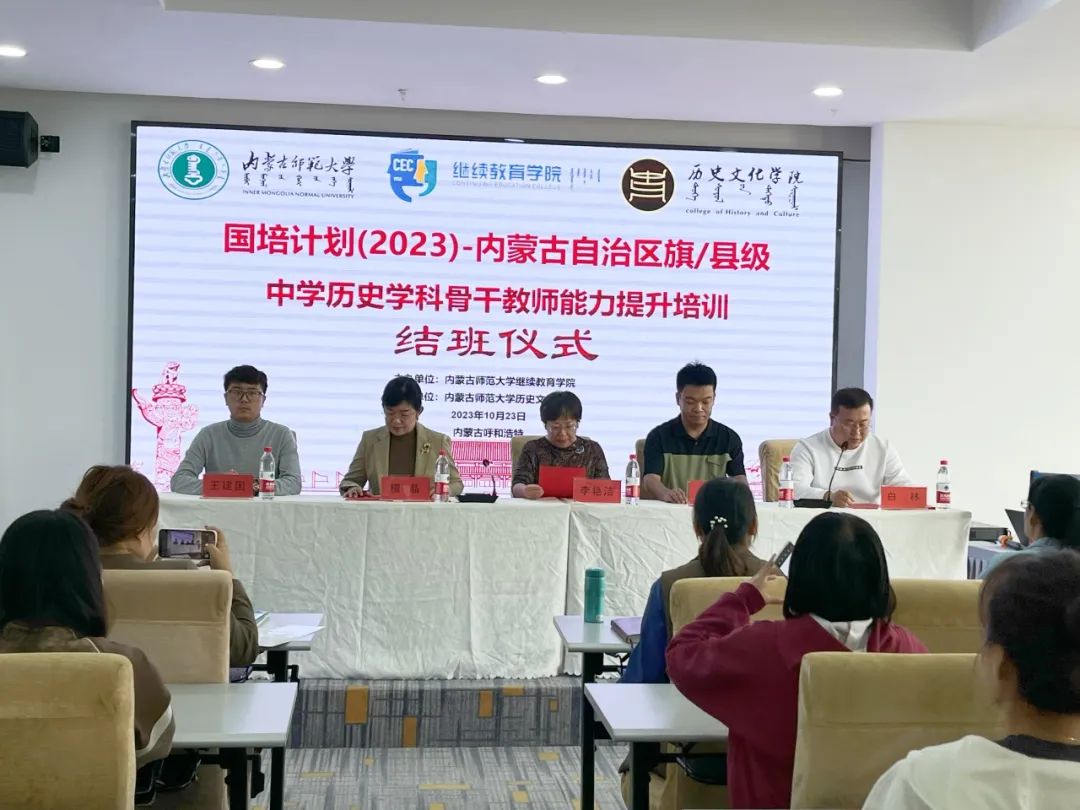 2023年10月23日下午,由伟德国际1946继续教育公司主办、bevictor伟德承办的“国培计划(2023)”——内蒙古自治区旗(县)级初中历史学科骨干教师培训班结班仪式在呼和浩特市赛罕区长安金座酒店四楼会议室举行。伟德国际1946继续教育公司培训部、自治区国培项目执行办公室王宣智老师,公司党委书记李艳洁,党委副书记、副经理檀晶,副经理白林,培训班班主任王建国及50名参训学员参加仪式,结班仪式由bevictor伟德副经理白林主持。