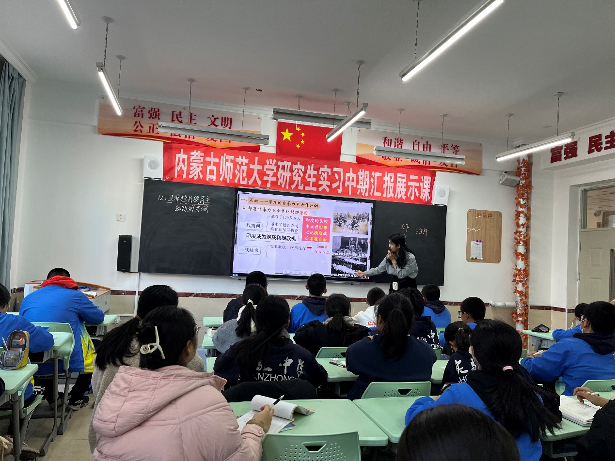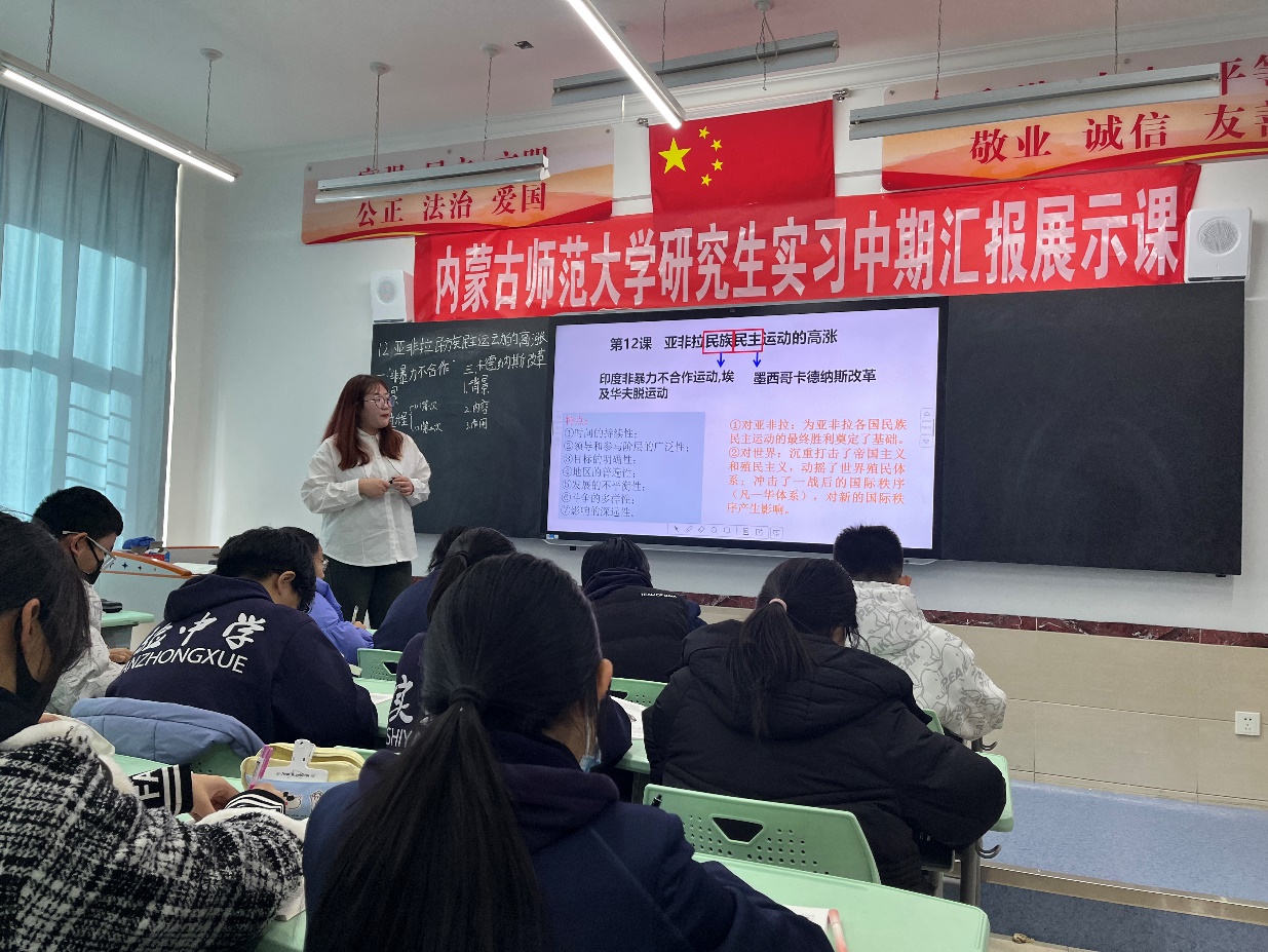 为了提高课堂教学的有效性,促推教师的专业成长,达到“以教促研,以研促教,教研相长”的目的。2023年11月15—16日,bevictor伟德联合呼和浩特市实验中学(鼓楼校区)历史组开展了研究生中期汇报展示课活动。伟德国际1946公司党委书记李艳洁、副书记檀晶、郭永胜教授、王洁、苏日古嘎、袁丽丽、于志勇,实验中学董事长黄咏梅、副董事长苗琪俊及副董事长齐涛等老师出席了本次活动。