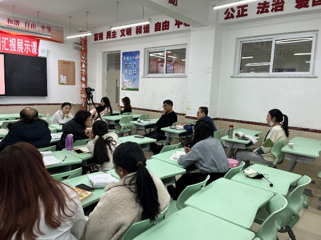 评课环节:老师们和同学们基本都指出其整节课的设计与实践存在一定差距,存在课堂气氛不够活跃等问题亟待解决。