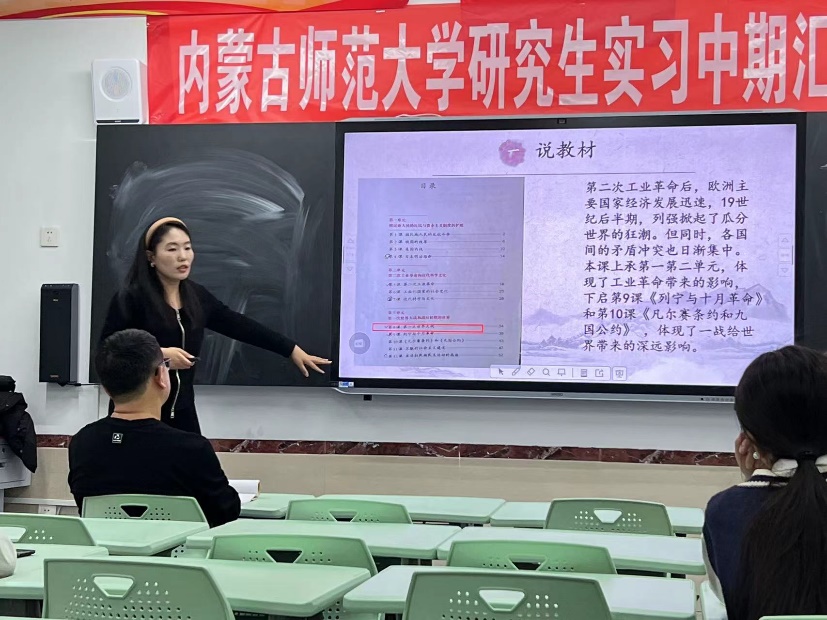 课后,夏祁雨浓同学进行说课展示,在说课环节后,呼和浩特实验中学的老师、bevictor伟德的老师、共同实习的研究生以及bevictor伟德23届学科教学(历史)的学弟学妹们,针对本节课开始进行评课环节。