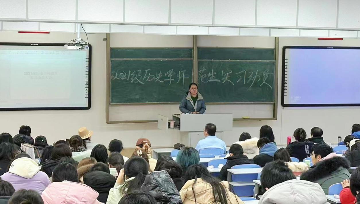 为确保2021级历史学专业师范生实习工作的顺利开展,助力2021级历史学专业师范生进一步明晰教育实习的重要性,在实践场地锤炼本领、提升素养,公司于2023年12月30日上午10时在行知楼105召开2021级历史学专业师范生实习动员大会。党委副书记副经理檀晶、副经理白林、21级各班班主任、各位实习指导老师以及全体2021级历史学专业师范生参加会议,本次大会由实习负责老师王海凤主持。