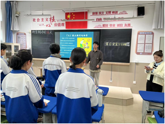 实习生每天参与早读、午读、跑操的监督以及班会的开展工作,并协助指导教师完成中考信息采集以及班级文化墙设计工作。除此之外,他们每周固定参与听课、评课、青年教师磨课、诸多活动策划以及部分教务工作,并参与历史组集体备课,分析问题、补正不足。真正参与教学一线工作后,她们才体会到教学与班级管理工作的不易,并深刻认识到广大一线教育从业者的工作是艰巨且光荣的。