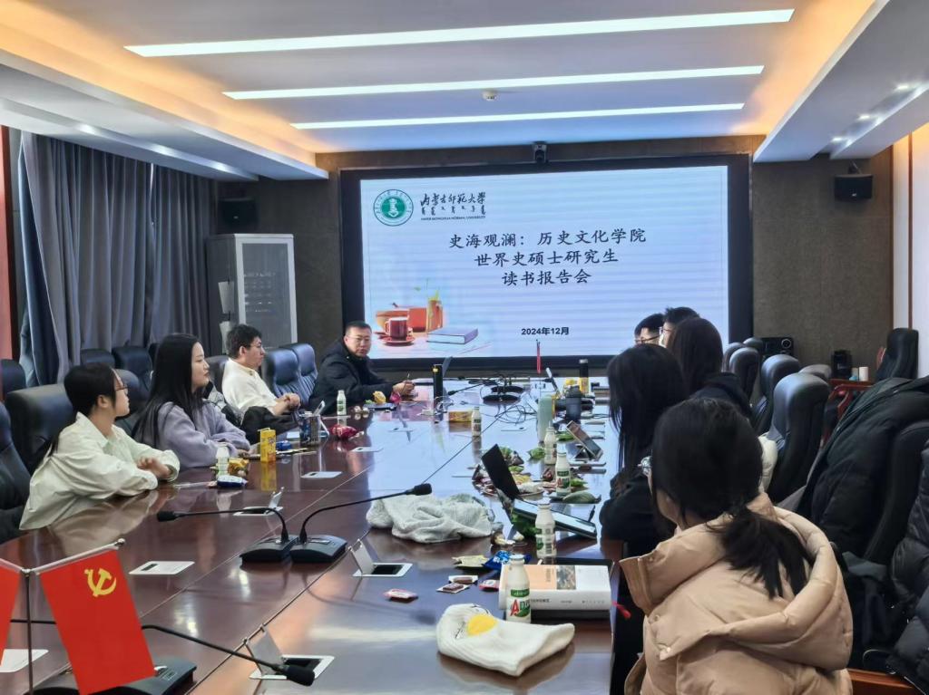 2024年12月27日下午,公司24级世界史研究生齐聚公司楼B502会议室,进行了“史海观澜”读书汇报会。同学们纷纷上台推荐了世界史书籍,并深入阐述书中精髓。整个读书会的气氛热烈而融洽。同学们共同分享阅读世界史书籍的感悟与思考,在知识的海洋中畅游,感受历史的波澜壮阔。