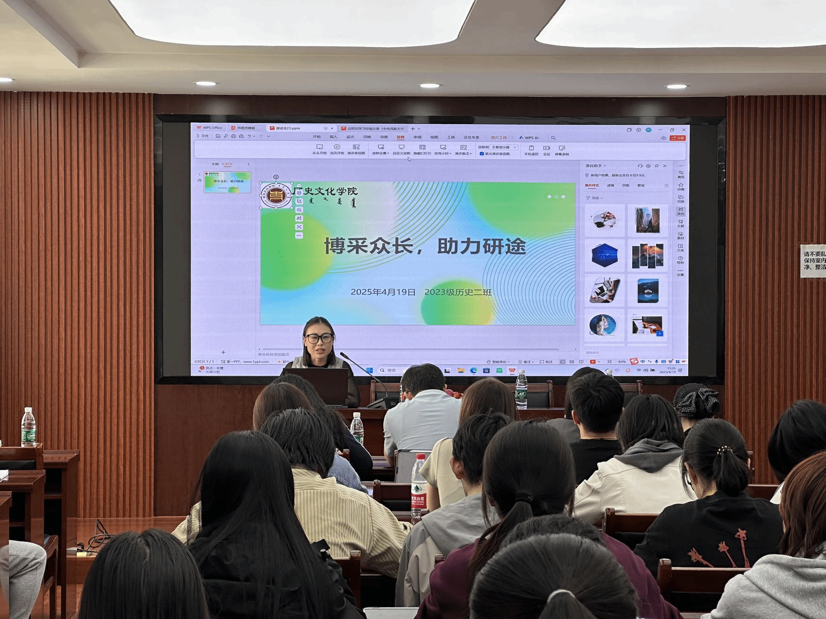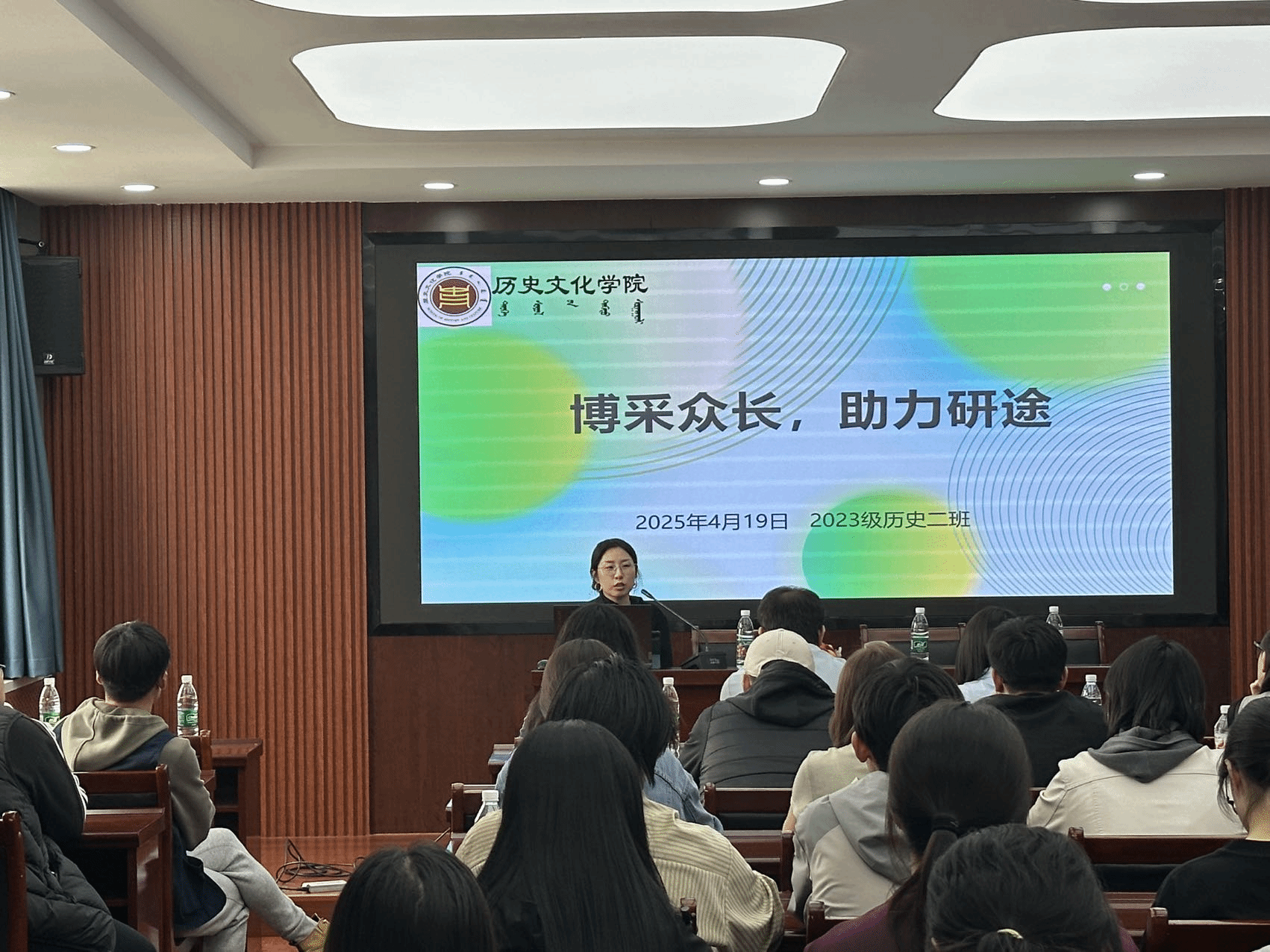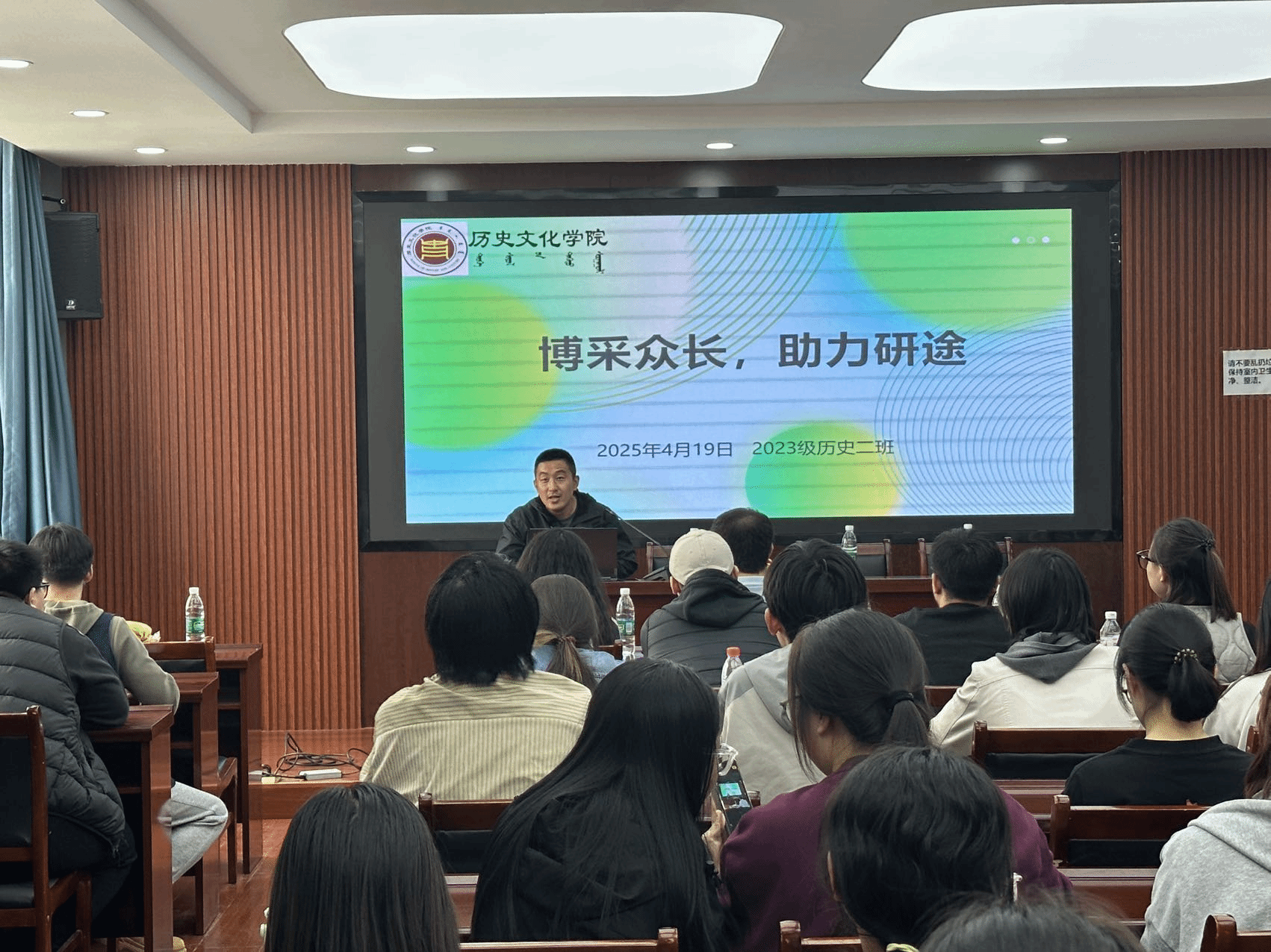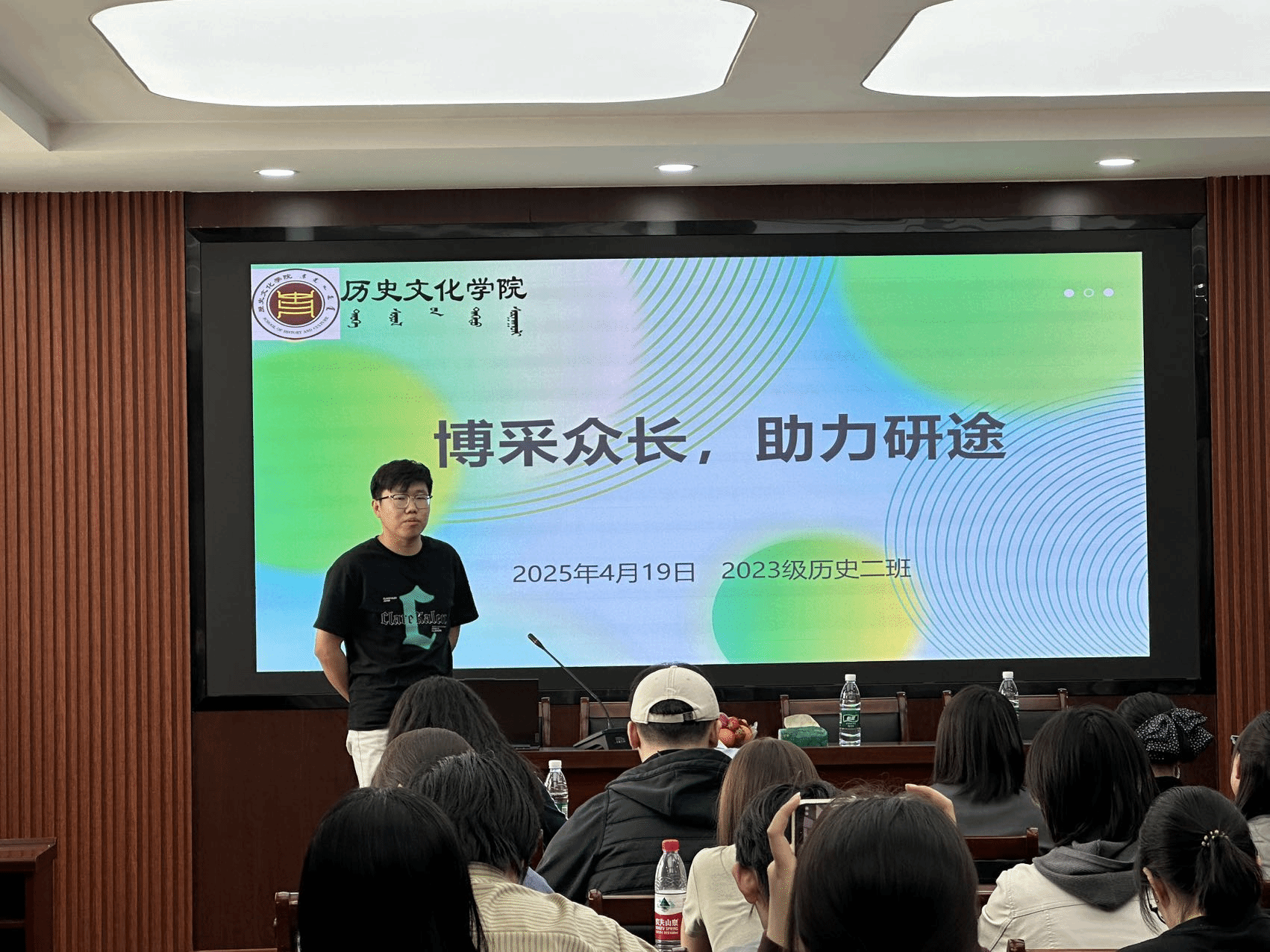 为了让同学们详细了解考研的注意事项,提前规划考研之路,在班主任齐英老师的精心组织下,公司2023级历史学二班于2025年4月19日成功举办了一场主题为“博采众长,助力研途”的考研经验交流会。本次活动吸引了全班五十余名同学以及部分其他年级同学的积极参与。