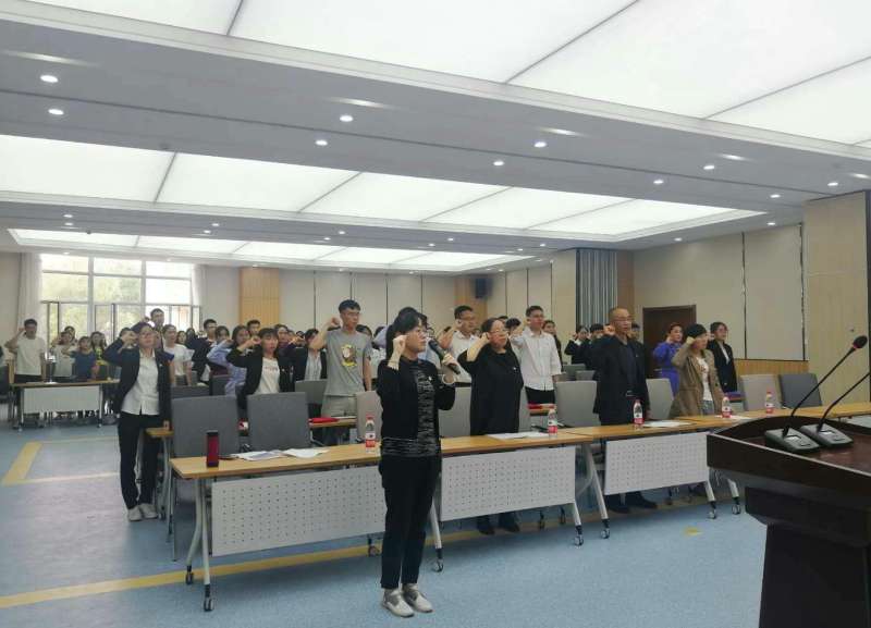 随后,员工党支部书记钱艳艳老师带领全体党员面向党旗,重温入党誓词。