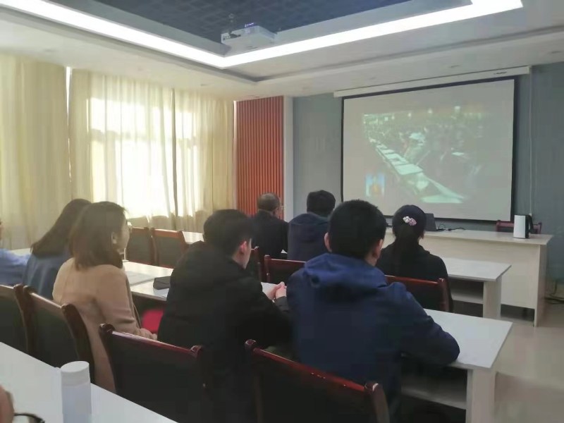 公司党总支书记张升、党总支副书记宋磊、团总支书记钱艳艳与员工党支部全体没课的党员在公司楼502收看开幕式和李克强总理做政府工作报告。