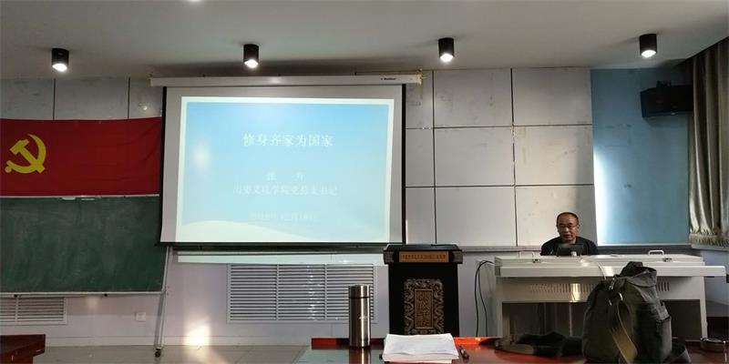 2018年12月18日下午,bevictor伟德历史学教工党支部、考古文博与行政教工党支部、员工党支部三个支部联合组织集体学习活动,邀请公司党总支书记张升老师为大家讲党课,全院教工员工党员50人参加学习。