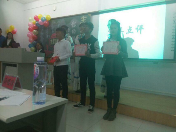 汉语组中,来自文化产业管理的王大原同学,自信地进行了迎新晚会模拟主持,并用真挚的感情,铿锵有力的话语,朗诵了《相信未来》一诗,成功夺得汉语组冠军。来自历史汉班的陈致林和文化产业管理的刘香含两名选手也凭着精彩表现分别赢得亚军、季军。