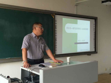 5月26日上午, 内蒙古大学出版社侯富英副社长为2014级文化产业管理班同学做了关于“职业化”的专题讲座。 讲座以“职业化-现代组织和员工必备的素质”为题。讲解过程中,侯社长以沃尔玛和家乐福的两个小故事引出职业化概念,继而结合具体案例讲了职业化的作用,及如何提升职业化技能。本次讲座使同学们懂得了“小胜凭智,大胜靠德”的成功秘诀。希望每位员工都能在不久的将来快速适应自己的职业角色。