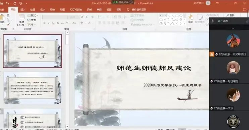 本次主题班会主要和同学们针对于师范生师风师德进行了交流。会议开始,由各班班长先向同学们简单介绍了本次会议的主题,并向大家说明了作为师范生的我们,师风师德建设的重要性,并且明确了师风师德建设对于今后各位同学从事教育工作的意义,明确了各位同学应该从当下做起,重视自己的言行举止,为今后奠基;紧接着,全班同学对于师风师德进行了讨论,同学们各抒己见,谈了自己对于师风师德的理解认识以及在平常我们应该如何要求自己;经过大家热烈讨论可见同学们对这一问题的认识程度也在加深,同时也推动着班会走向结尾,最后班长再次总结同学们对于师风师德的理解以及就如何做好师风师德建设工作向同学们作了说明,也向大家明确了班级将开始并持续推动这一工作的进行,要求全员参与、全员重视。