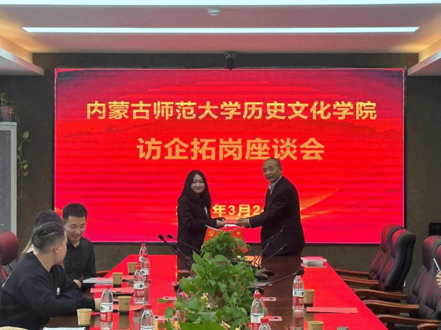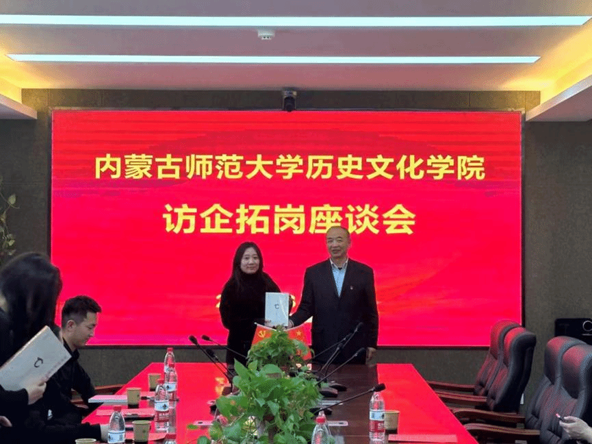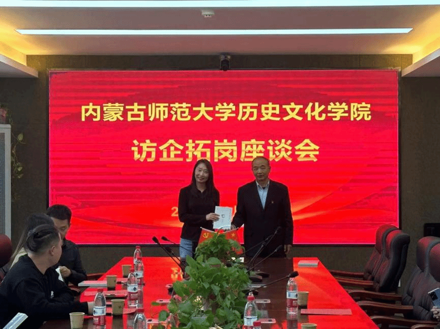 最后,公司党委书记张升代表公司向各位前来参会的企业代表赠送了《简明内蒙古地方史》书籍,并表示希望通过此次访企拓岗活动,一方面向优质企业推荐历史学专业毕业生,拓宽就业渠道,做好企业和人才的供需对接;另外一方面,可以深度了解用人单位对毕业生的知识、能力、素质要求,努力培养以出口为导向的高素质优秀人才。