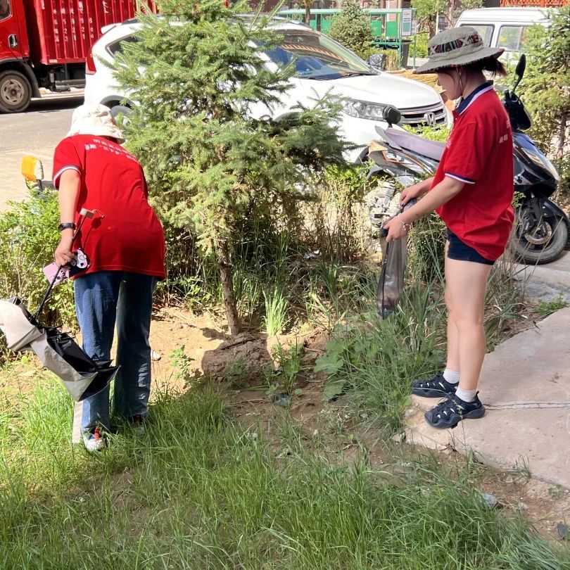 下午,同学们在社区网格员的带领下带着铲刀、抹布等各种工具,在社区内开始清理垃圾杂物。经过队员们的努力,有效改善了社区内的环境卫生和路边脏、乱、差场所。