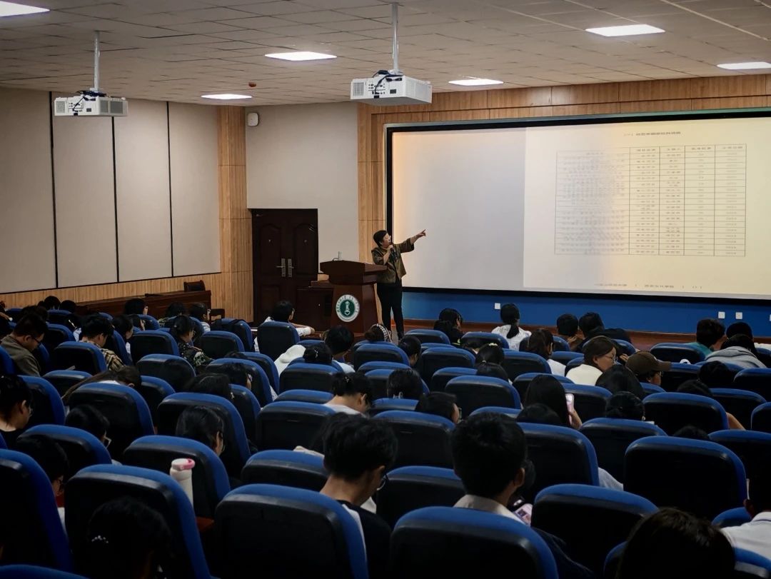 随后,公司教学秘书朝克毕力格老师深入解读了学籍管理(包括转专业、退学、休学、降级政策)以及学业成绩监测与处理机制。朝克毕力格老师针对各个专业,详细阐述了专业培养方案与学分构成。同时,朝克老师就选课流程进行了详细讲解与指导,并强调了注意事项,助力同学们合理规划学业,优化课程选择,确保学习高效顺畅。