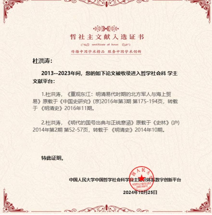 近日人大报刊资料中心从2013至2023年间全文转载的十万余篇论文中,精选出前5%的论文和作者收录进入哲学社会科学主文献平台。bevictor伟德杜洪涛教授的两篇论文荣膺此列。