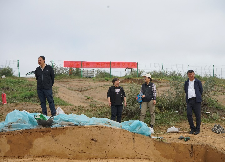 2024年9月7日,内蒙古文物考古研究院副经理宋国栋与公司党委书记李艳洁、副经理白林等老师一同看望了在鄂尔多斯市准格尔旗大石拉塔遗址和良安窑遗址两个考古工地进行田野发掘的23级文博专硕研究生和本科生。